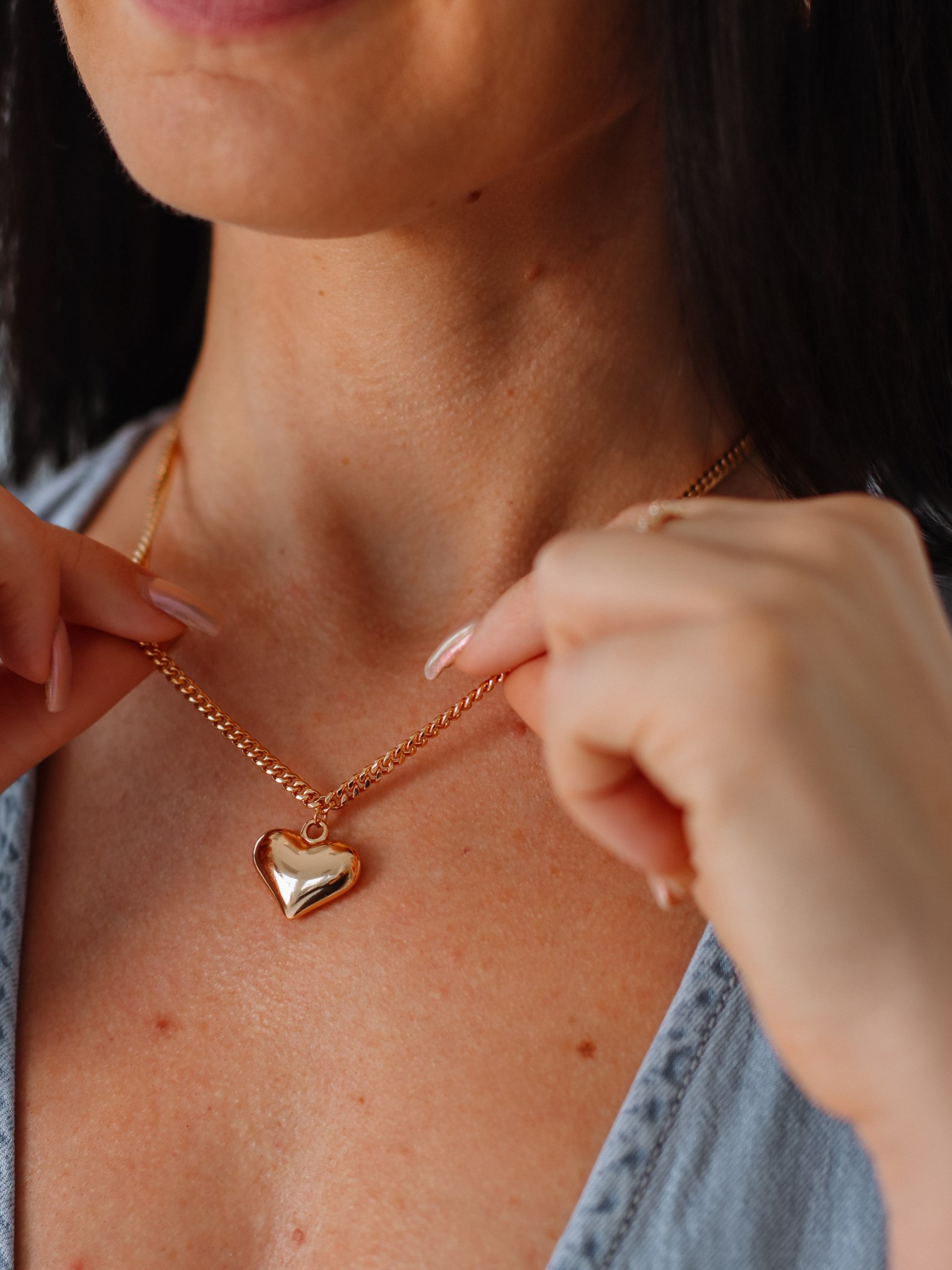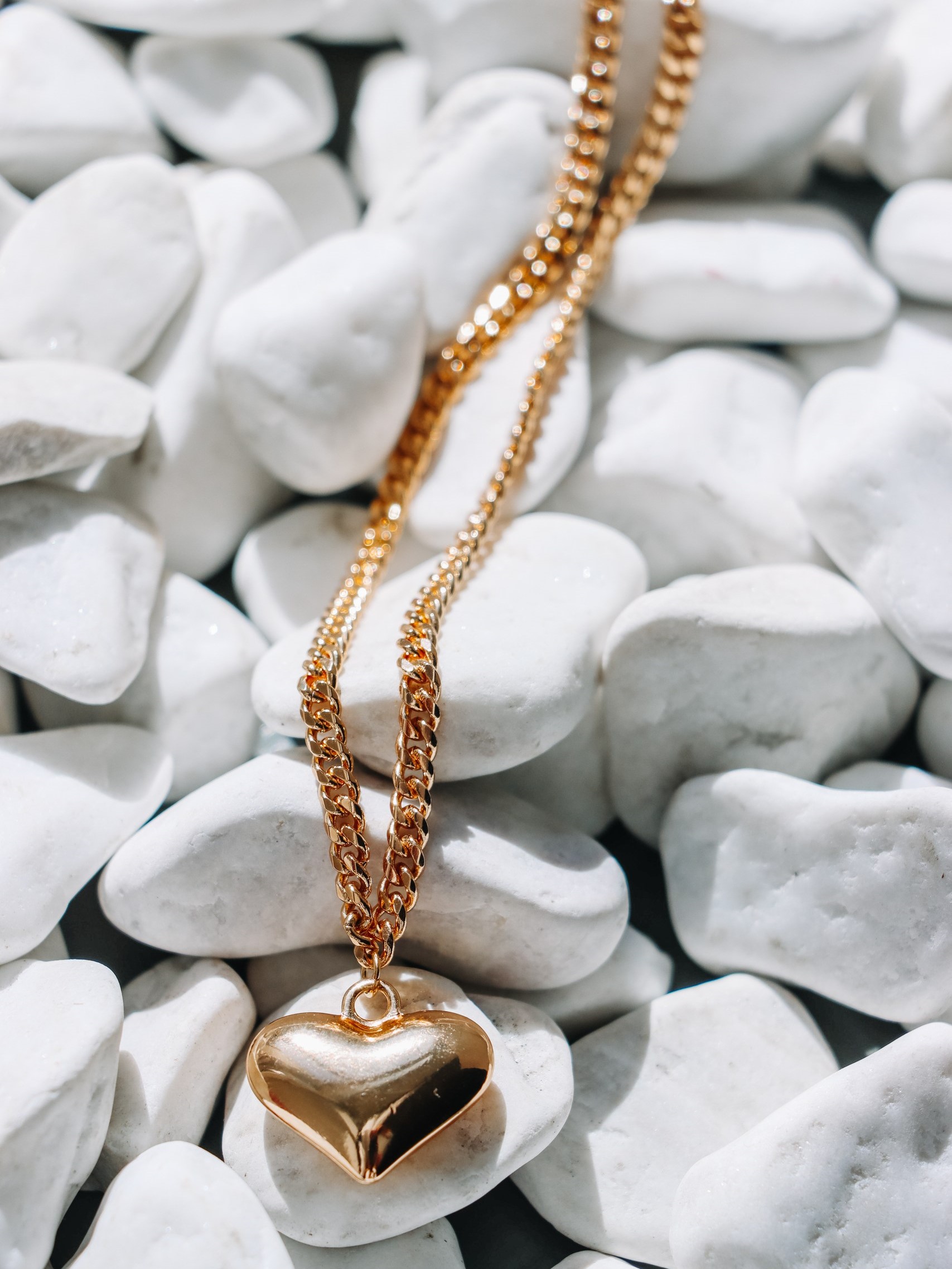 Apzeltīta kaklarota ar ķēdes elementu un sirds kulonu.