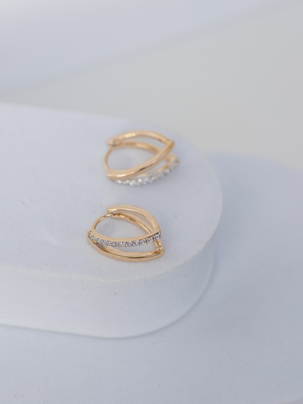 Apzeltīti auskari ar mirdzošiem cirkoniem.