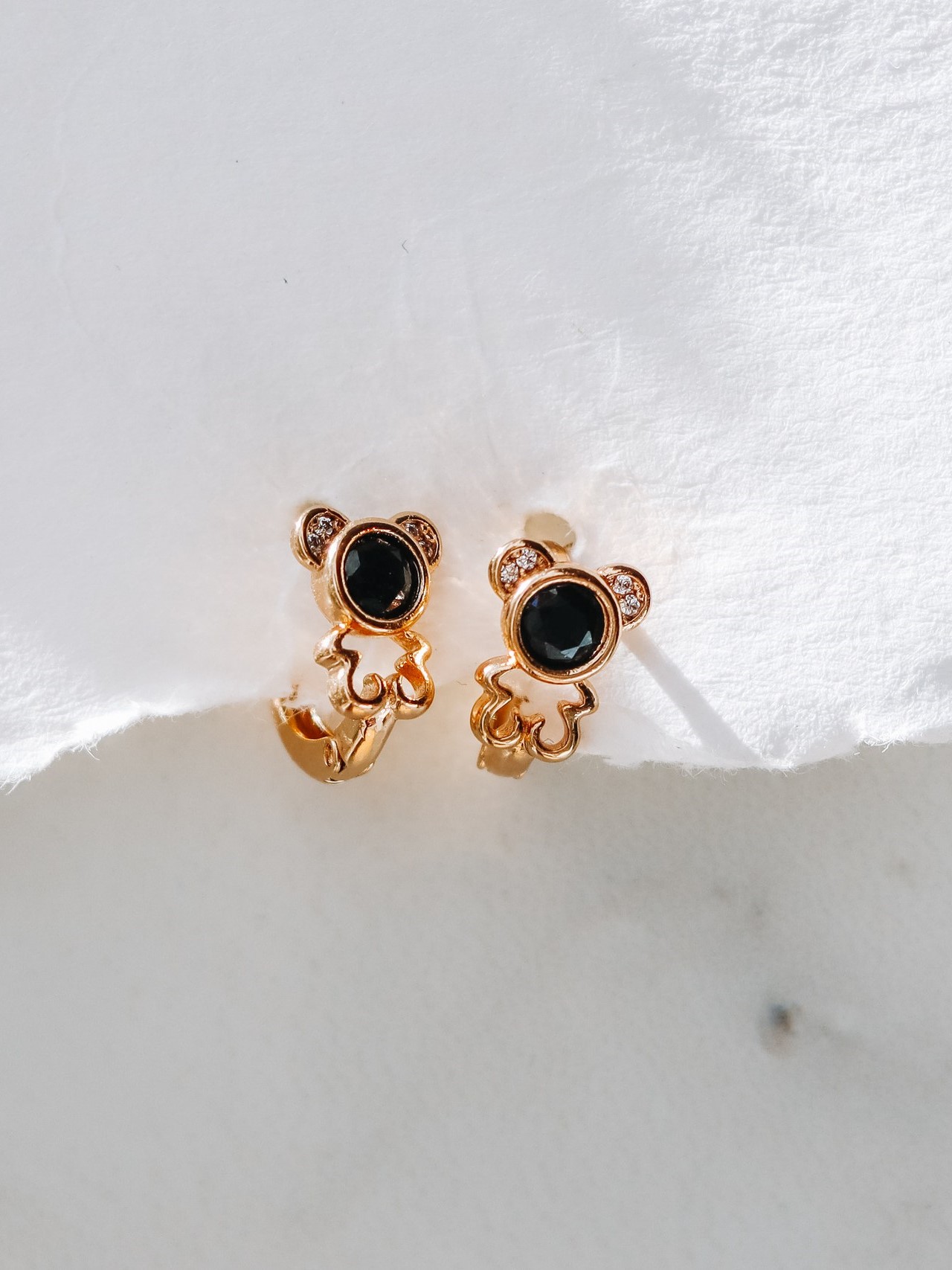 Apzeltīti bērnu auskari Sparkle Cubs ar riņķīšu aizdari un maziem, mīlīgiem cirkonu lācēniem.