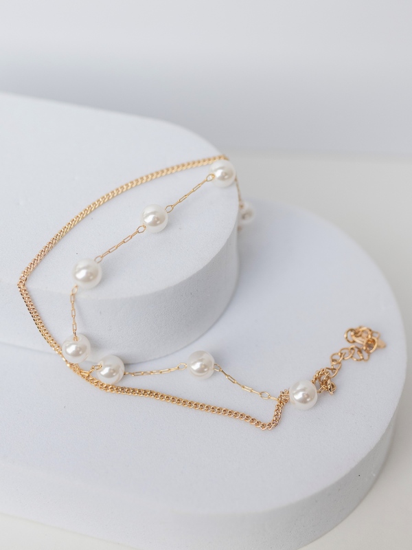 Apzeltīta dubultā rokassprādze ar stikla pērlītēm un smalku ķēdīti.